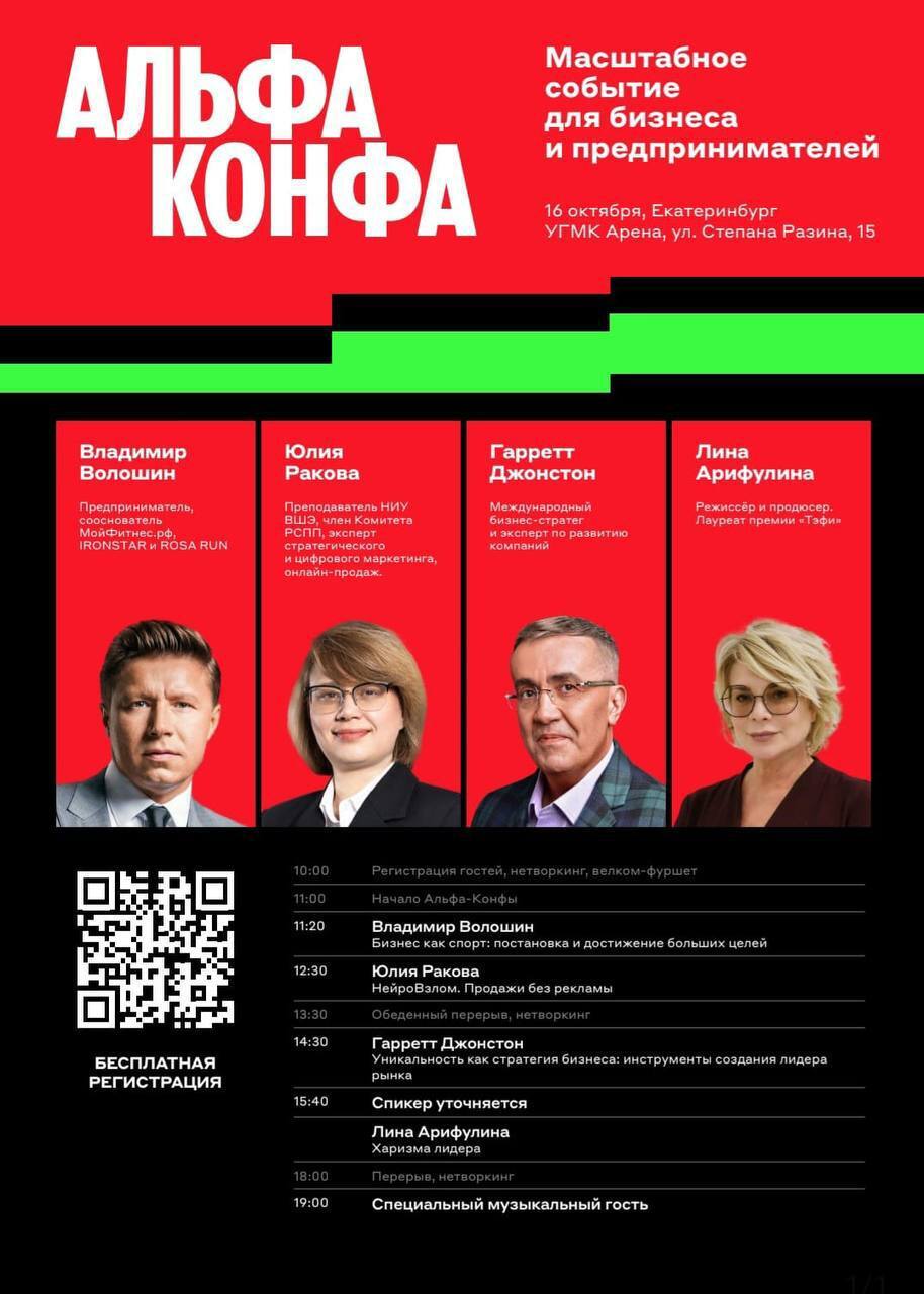 У каждого предпринимателя бывает момент, когда хочется большего: новых точек роста, честных инсайтов, сильных идей и среды, где тебя понимают с полуслова. Если это откликается — вам на Альфа-Конфу в Екатеринбурге, 16 октября.