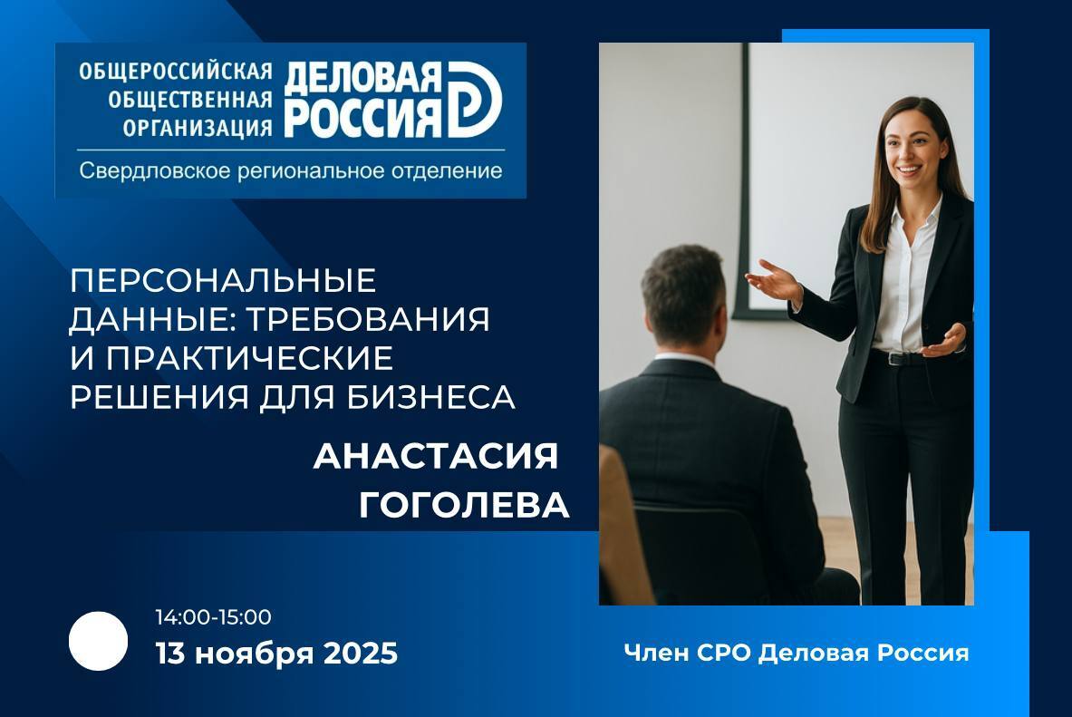 - рекомендации по минимизации рисков и предотвращению нарушений. Спикер — Анастасия Александровна Гоголева, начальник отдела контроля и надзора за соблюдением законодательства в сфере персональных данных Управления Роскомнадзора по УрФО. Участники смогут получить разъяснения по применению закона, задать вопросы и обсудить конкретные ситуации из практики.